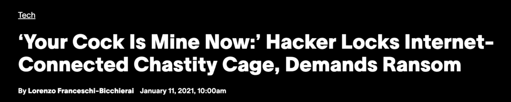 在之前,就曾出现过黑客入侵远程操控小玩具并进行勒索的炸裂故事。在互联网上,人人把开盒视为大敌时一定不会想到,能一口气供出地理位置和私密偏好的,也有可能是卧室抽屉里的那个小玩意儿。