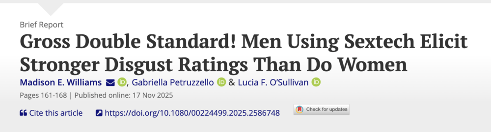 像飞机杯和震动棒这样的手持小玩具最不令人讨厌,和AI情色聊天机器人互动会让人感到更不舒服。使用仿真性爱机器人的人,最容易引发强烈的厌恶感。