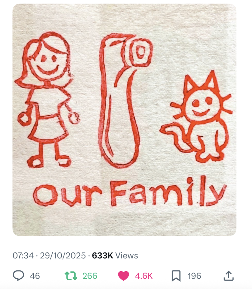 一个快乐的女人,一个快乐的猫咪,和正中间的电动按摩器,组成了博主们口中的“女性最理想的后现代主义家庭”。