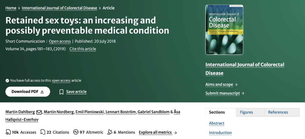 一位瑞典外科医生在研究中注意到,因为使用性玩具不当而受伤的人越来越多,也总会有人拉不下脸去医院。因此他希望推动建立统一的安全标准,让玩具自身就是安全的。